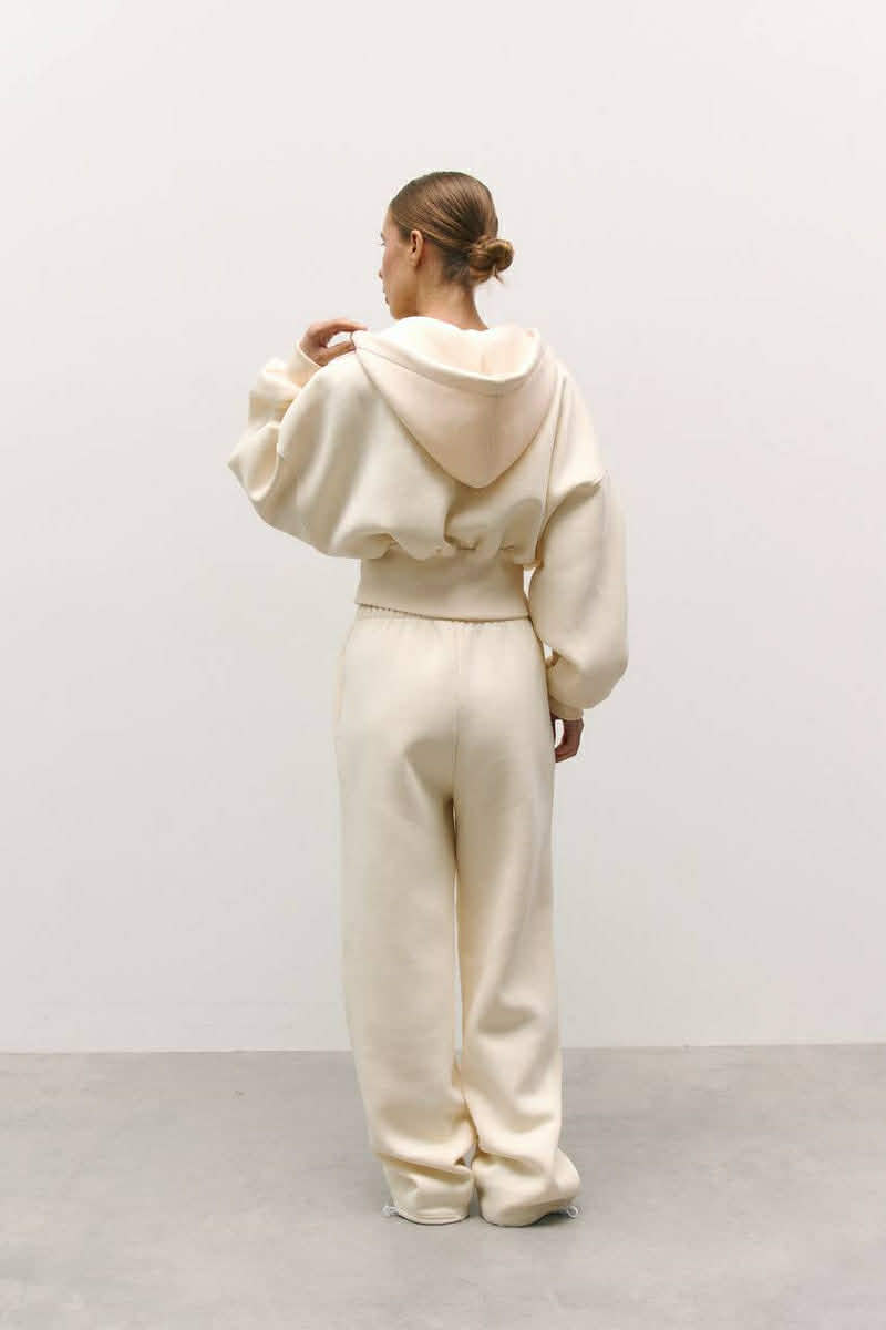 La coupe oversize moderne sublime toutes les silhouettes et vous offre cette confiance instantanée que vous méritez. La veste à capuche généreuse avec fermeture éclair intégrale permet un ajustement personnalisé, tandis que le pantalon assorti doté d'une taille élastique ajustable garantit un maintien parfait sans compromettre votre liberté de mouvement.